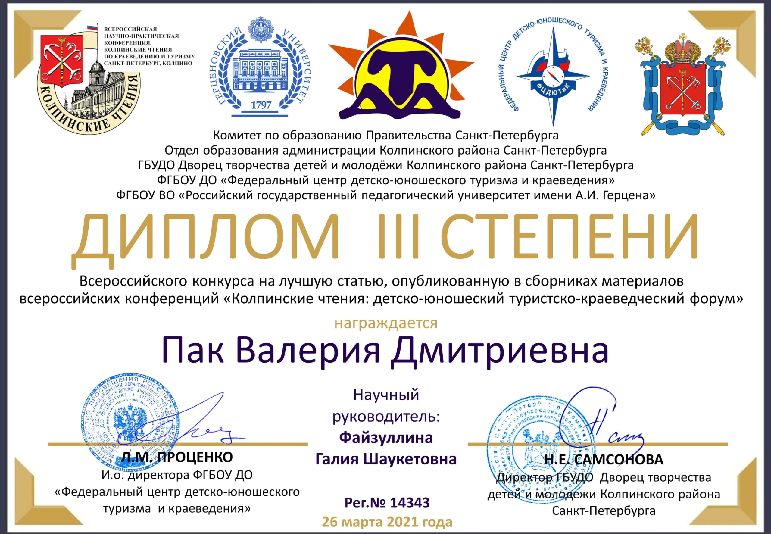 Students of the 4th year of the educational program «Restaurant business and hotel business» Veronika Makarova and Valeria Pak, took part in the St. Petersburg All-Russian conference «Kolpinsky readings: children’s and youth tourism and local history Forum» (April 2021), in November received diplomas of the III degree for winning the competition for the best article published in collections of materials. Their article was written based on the results of work in the framework of the course «Branding» (lector G. Fayzullina). Veronika and Valeria reviewed the situation with the tourist infrastructure in Kazakhstan in the field of catering. They conducted a survey on the popularity of donuts as one of the fast food products. According to the results of the survey, a hypothesis was put forward about the prospects of using food trucks as one of the tools for the development of the tourist potential in the Almaty region.