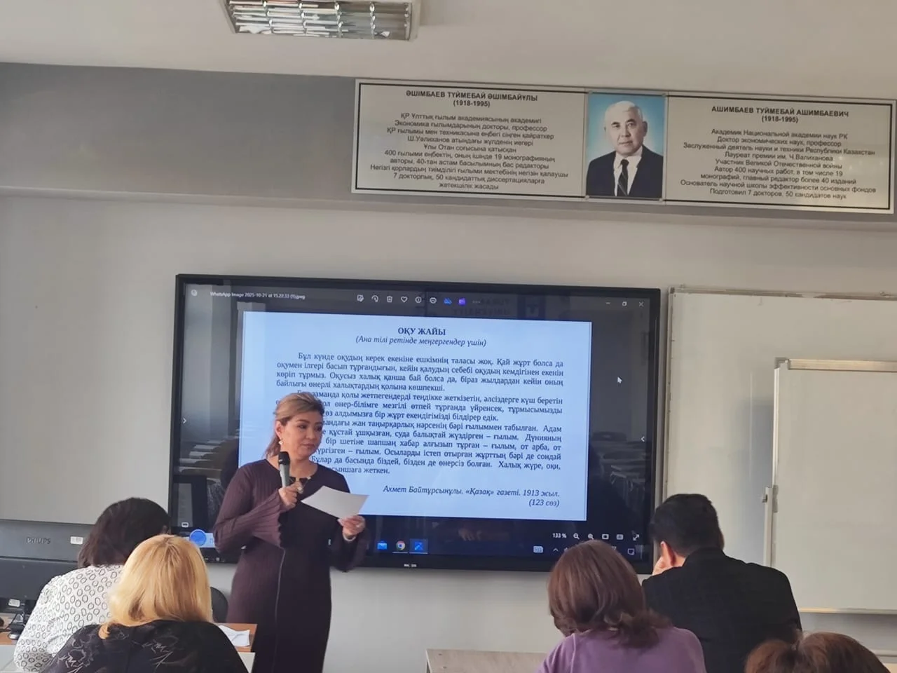 The text was read by Associate Professor Aynur Aralbekovna Karshigaeva and Master of Pedagogical Sciences, Senior Lecturer Mayra Musayevna Zhagiparova.
