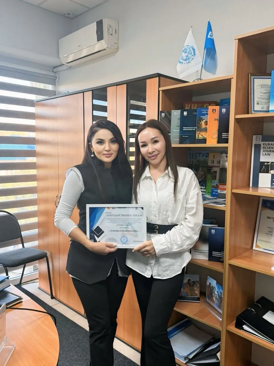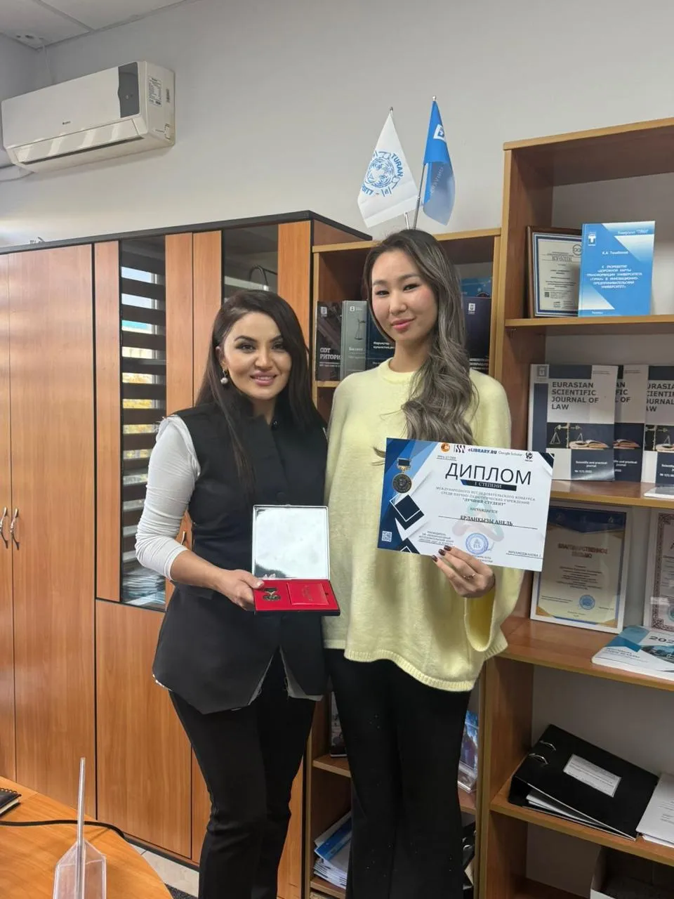 The Higher School of Law cordially congratulates Yerlanyzy Anel and Құ ttymyrat Aruzhan Yerlanyzyn on awarding the 1st degree diploma of the International Research Competition among scientific and pedagogical institutions “Best Student.” We express special gratitude to the supervisor Tulebaeva A.S. for invaluable support, professional mentoring and contribution to the development of talented students. In honor of this victory, a letter of thanks is awarded for the high level of training and inspiration of future specialists. This victory is the result of perseverance, knowledge and joint work of the student and mentor. Let there be even more achievements, discoveries and victories ahead!