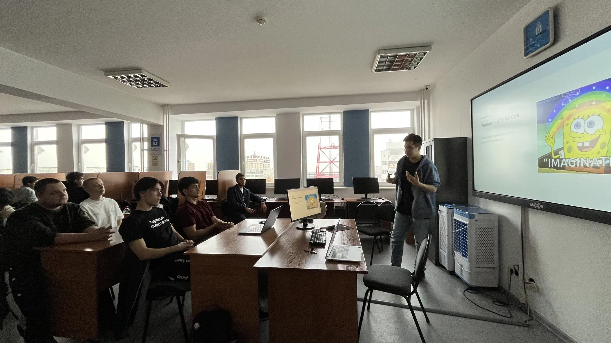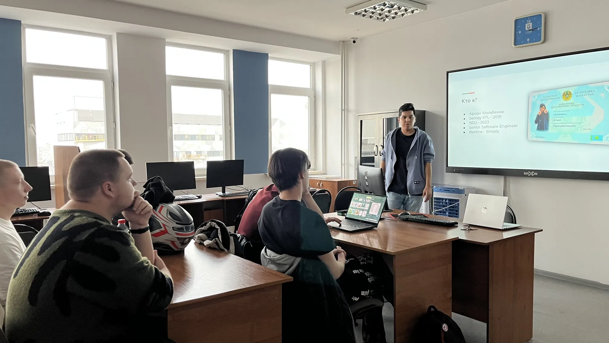 The lecture was delivered by Arsen Ulykbekov, Java Developer at Beeline. During the session, the speaker discussed the essential tools, libraries, and frameworks for beginner programmers, the principles of building corporate systems, and career opportunities in the software development industry.