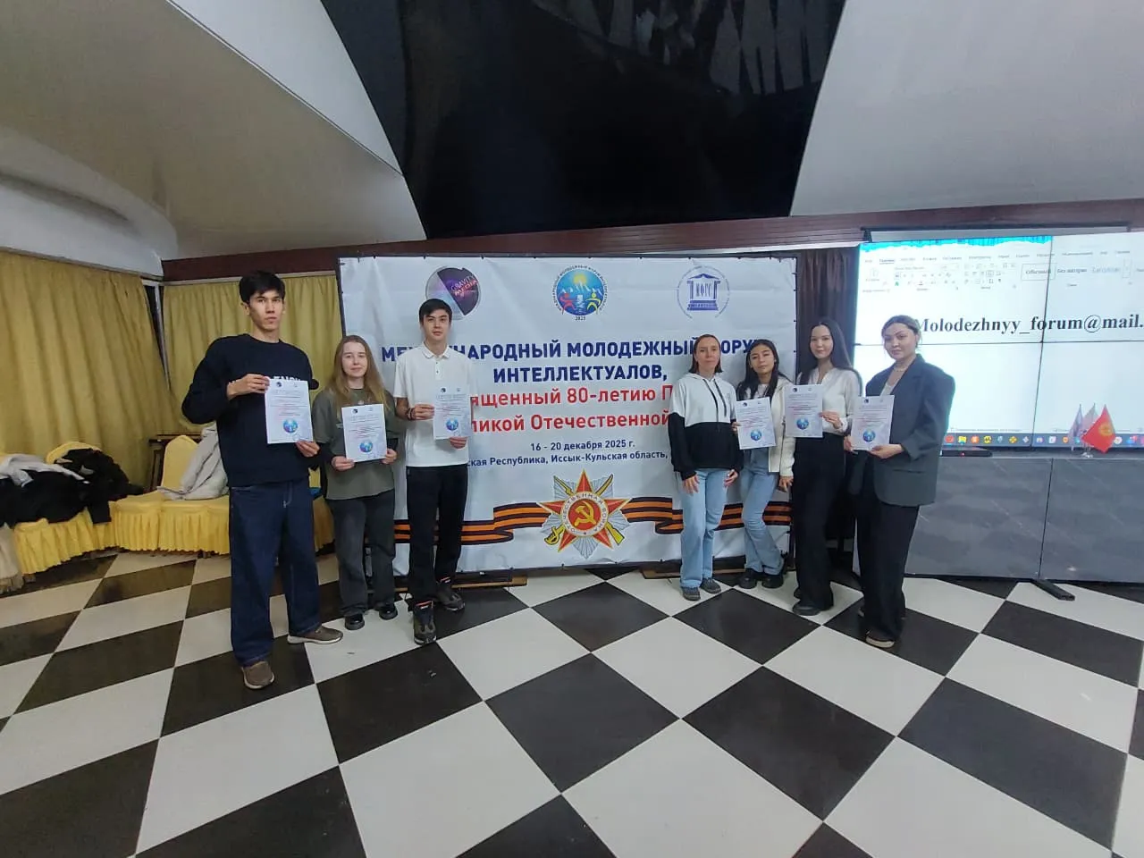 Students and faculty members of the Higher School of Tourism and Hospitality of Turan University took part in the International Youth Forum of Intellectuals dedicated to the 80th anniversary of the Victory in the Great Patriotic War. The forum was held from December 16 to 20, 2025, in the city of Cholpon-Ata, Kyrgyz Republic, and brought together youth delegations from Azerbaijan, Belarus, Kazakhstan, Kyrgyzstan, Russia, Tajikistan, and Uzbekistan.