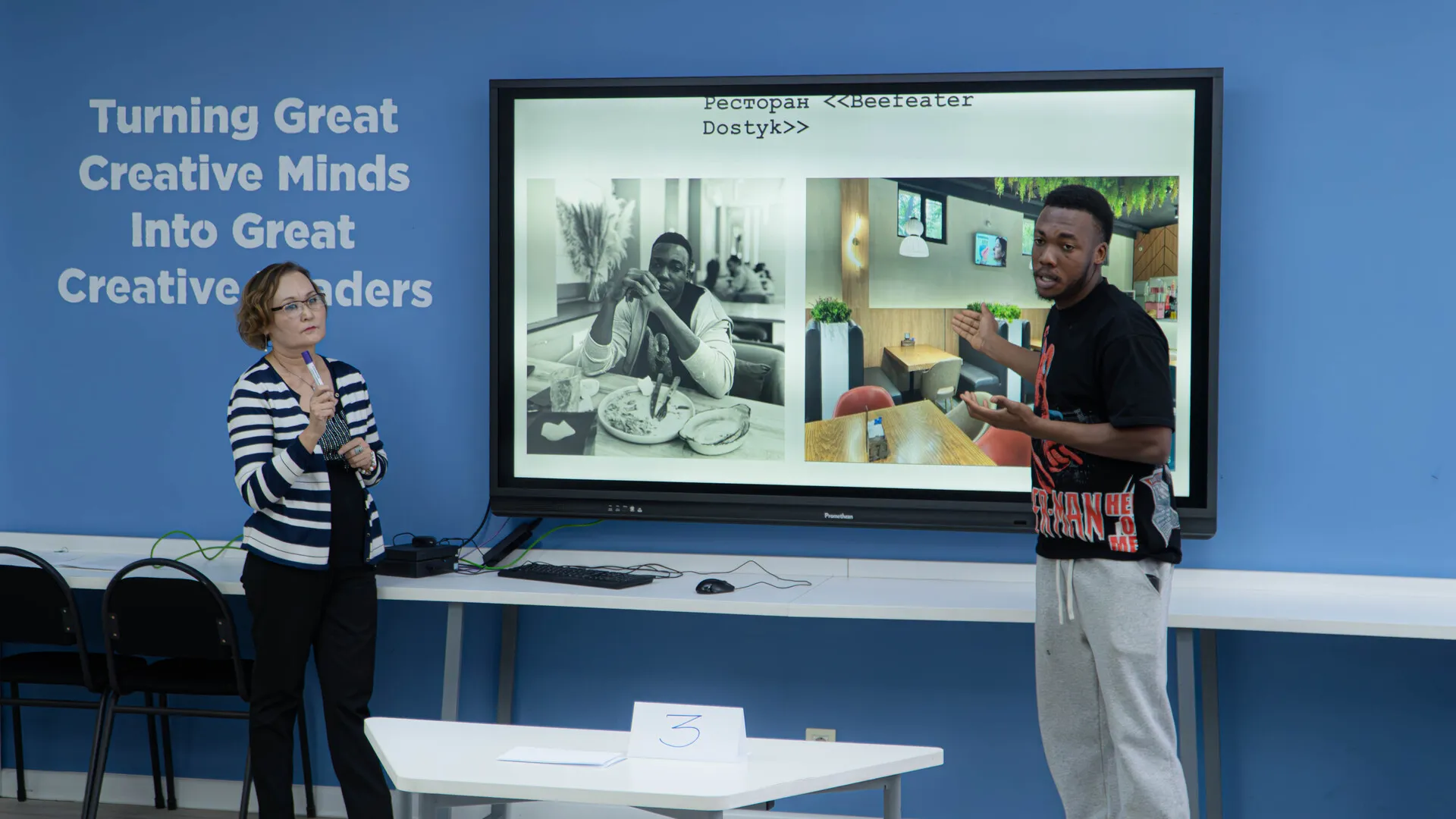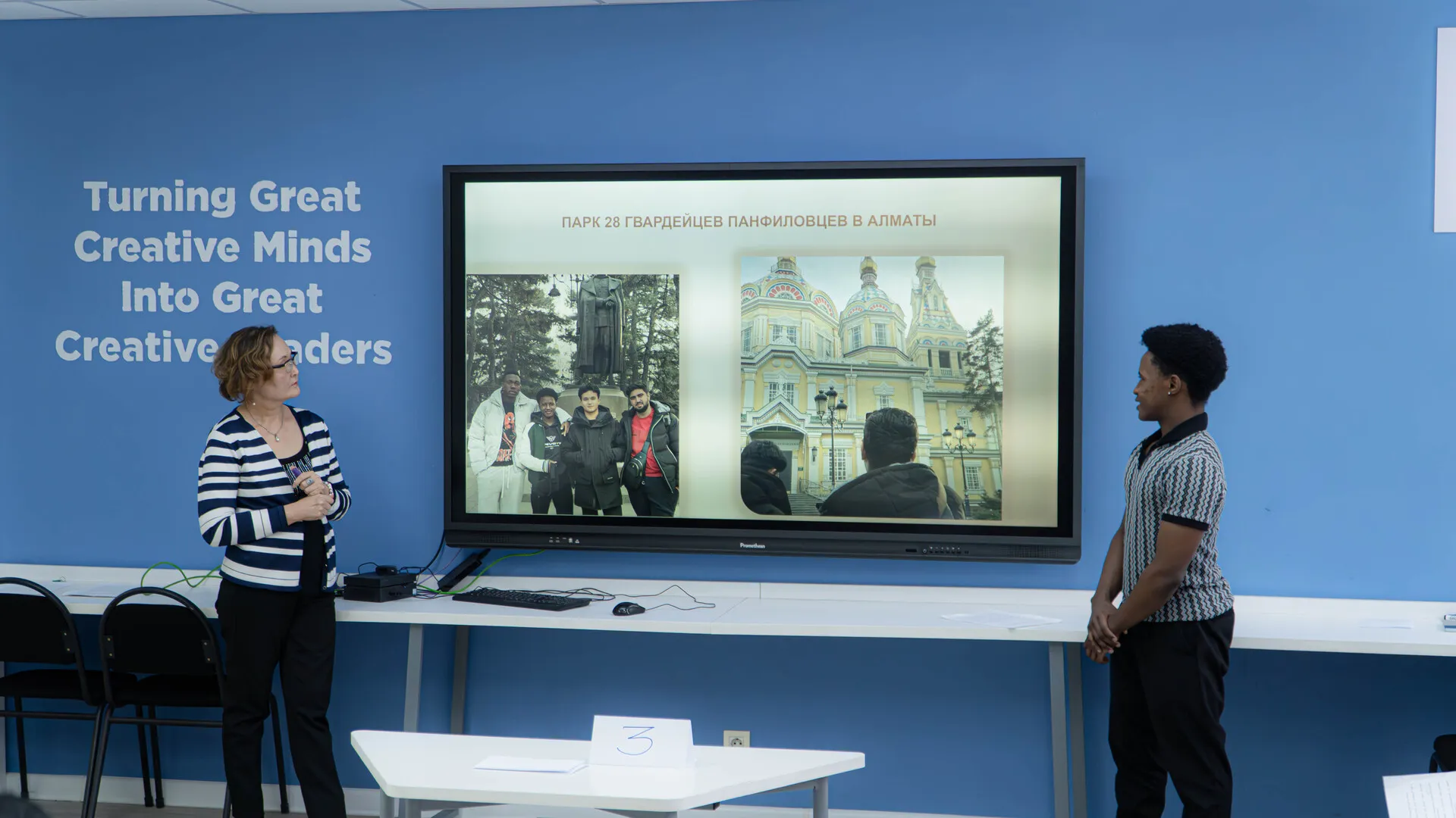 The students prepared presentations and reports in Russian about their favorite places in Almaty and in their home countries. They demonstrated active use of the Russian language: talking about their favorite places, engaging in dialogue, and presenting their ideas to the audience. A special feature of the lesson was an interactive quest, which turned the lesson into an engaging game where students practiced and reinforced the material by completing tasks.