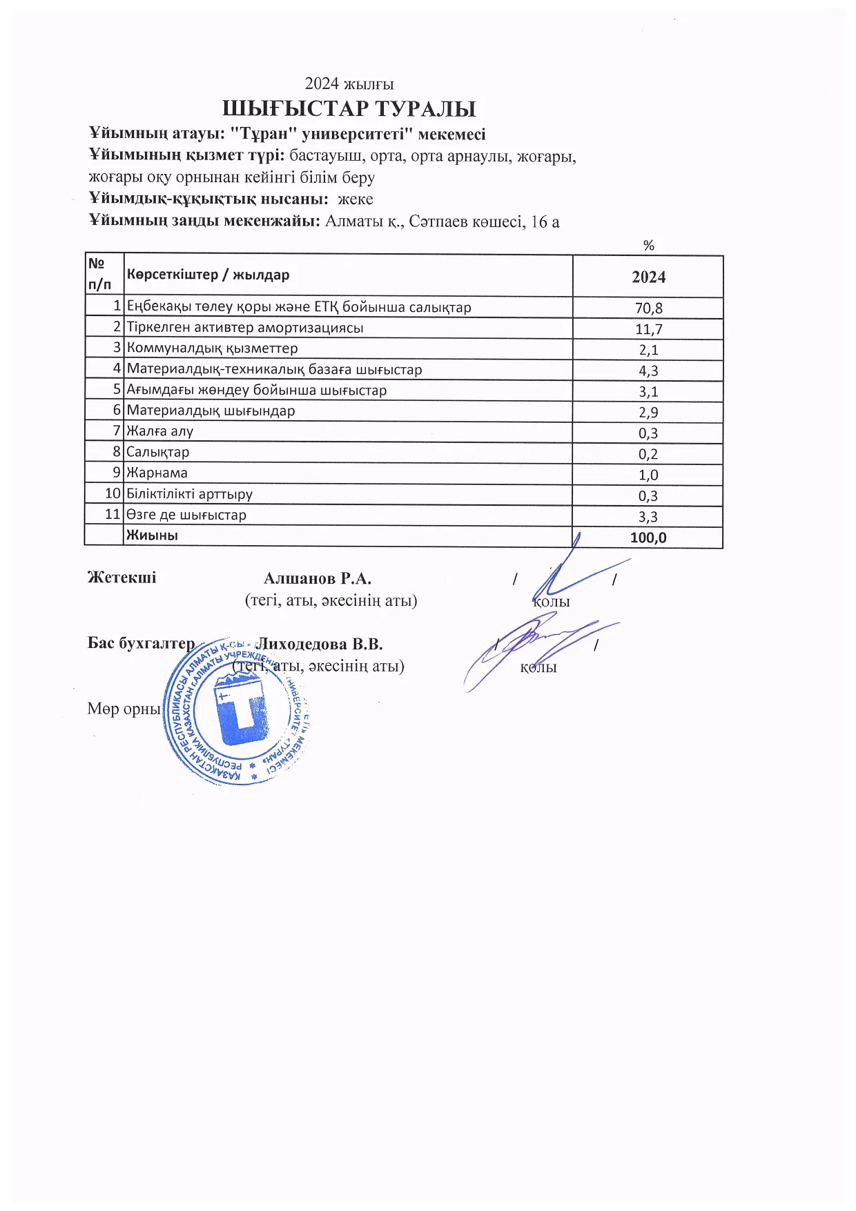 Мемлекеттік білім беру тапсырысының бюджет қаражатының ішкі аудиті туралы есеп 2024