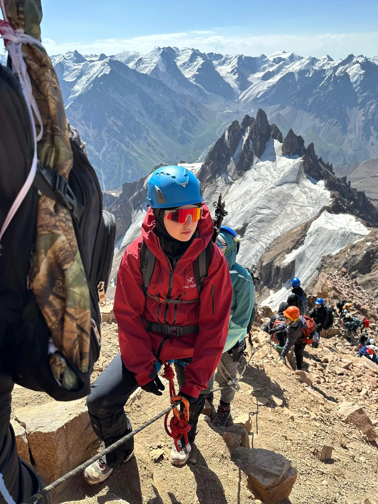 6 шілде күні таңғы сағат 3:00-де альпинистердің шамдары жарқырап, шыңға шығуға дайындық басталды. Сағат 7:00-де, 500 метр биіктікке көтерілген соң, қатысушылар асуға жетті. Бұл жерде техникалық бөлім басталды — каска мен сақтандыру құрылғыларын кию қажет болды. Шыңға дейін 376 метр биіктік қалған еді.