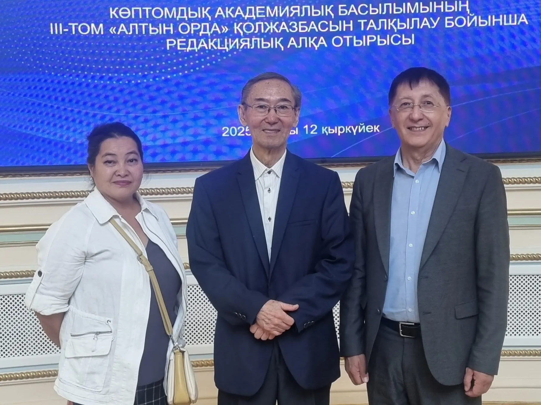 «Тұран» университетінің Халықаралық қатынастар және дипломатия Жоғары мектебі жанындағы Регионалдық зерттеулер орталығының қызметкерлері профессор Камалов Аблет Каюмович және профессор Торланбаева Кенже Ускенбаевна 2025 ж. 12 қыркүйекте Алматы қ. Достық үйінде өткен жетітомдық «Ежелгіден бүгінгі күнге дейінгі Қазақстан тарихы» еңбегінің Редакциялық алқасының отырысына қатысты.