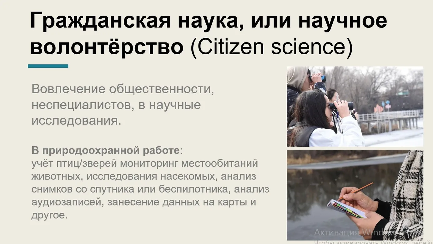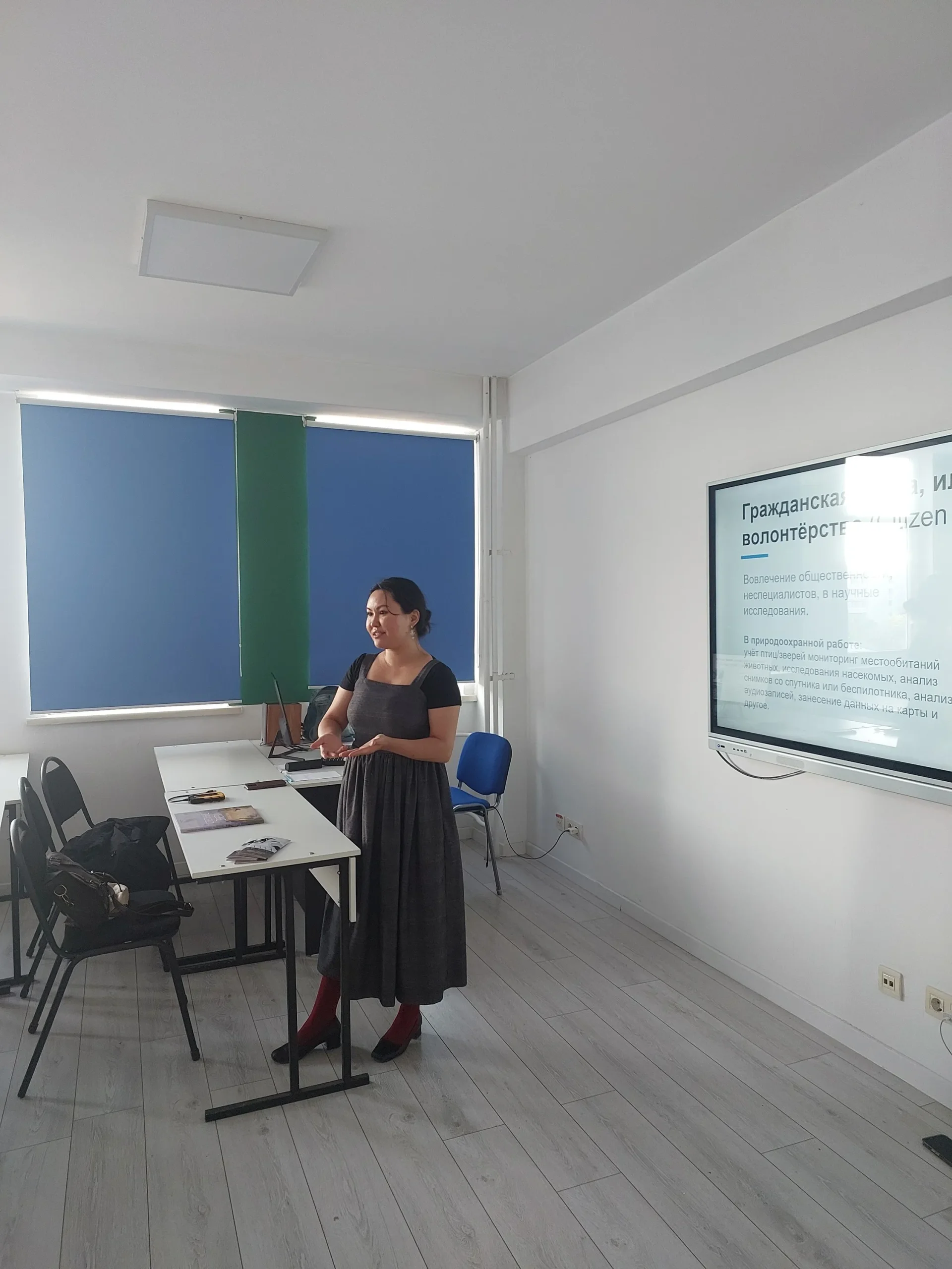 2025 жылғы 25 қыркүйекте «Өлкетану және музейтану» курсы шеңберінде «Туризм» білім беру бағдарламасының студенттері алдында қонақ дәрісімен (оқытушы, т.ғ.к. Г.Ш. Файзуллина) АСБК (Қазақстандық биоәртүрлілікті сақтау қауымдастығы) жетекші маманы Э.Т. Мұстафина сөз сөйледі. Эльмира Талғатқызы волонтерліктің заманауи трендтері туралы, оның азаматтық ғылым немесе ғылыми волонтерлік (Citizen science) сияқты бағыты туралы айтып, табиғатты суретке түсіру арқылы ғылыми жаңалық ашуға болатындығы туралы мысалдармен бөлісті. Азаматтық ғылыммен айналыса отырып, студенттер ғылымға жеке үлес қоса алады және ғалымдарға мәліметтер жинауға көмектеседі, табиғи нысандар мен құбылыстарды бақылаудың практикалық тәжірибесін алады, пікірлестер қауымдастығын құра алады.