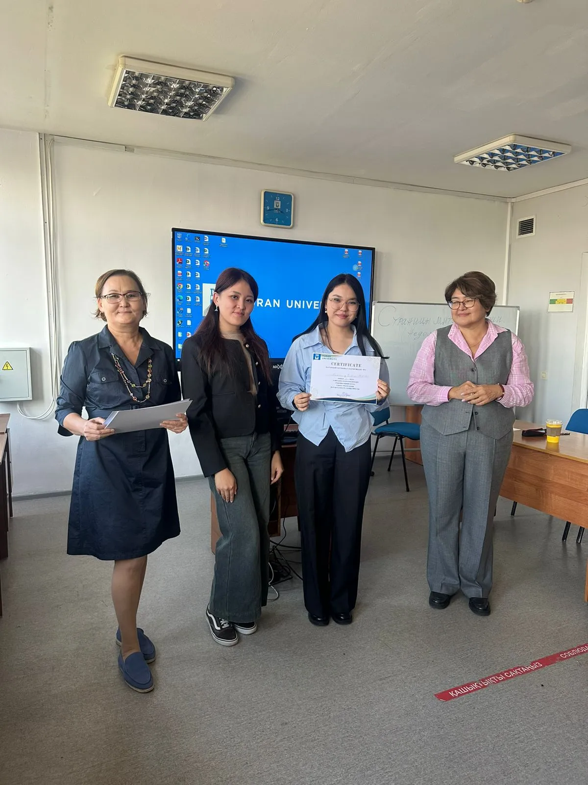 ІІІ орын – Бағаз Назерке (“Аударма ісі” мамандығы), Абдулла Адия (“Халықаралық қатынастар” мамандығы), Жуман Балым (“Аударма ісі” мамандығы)