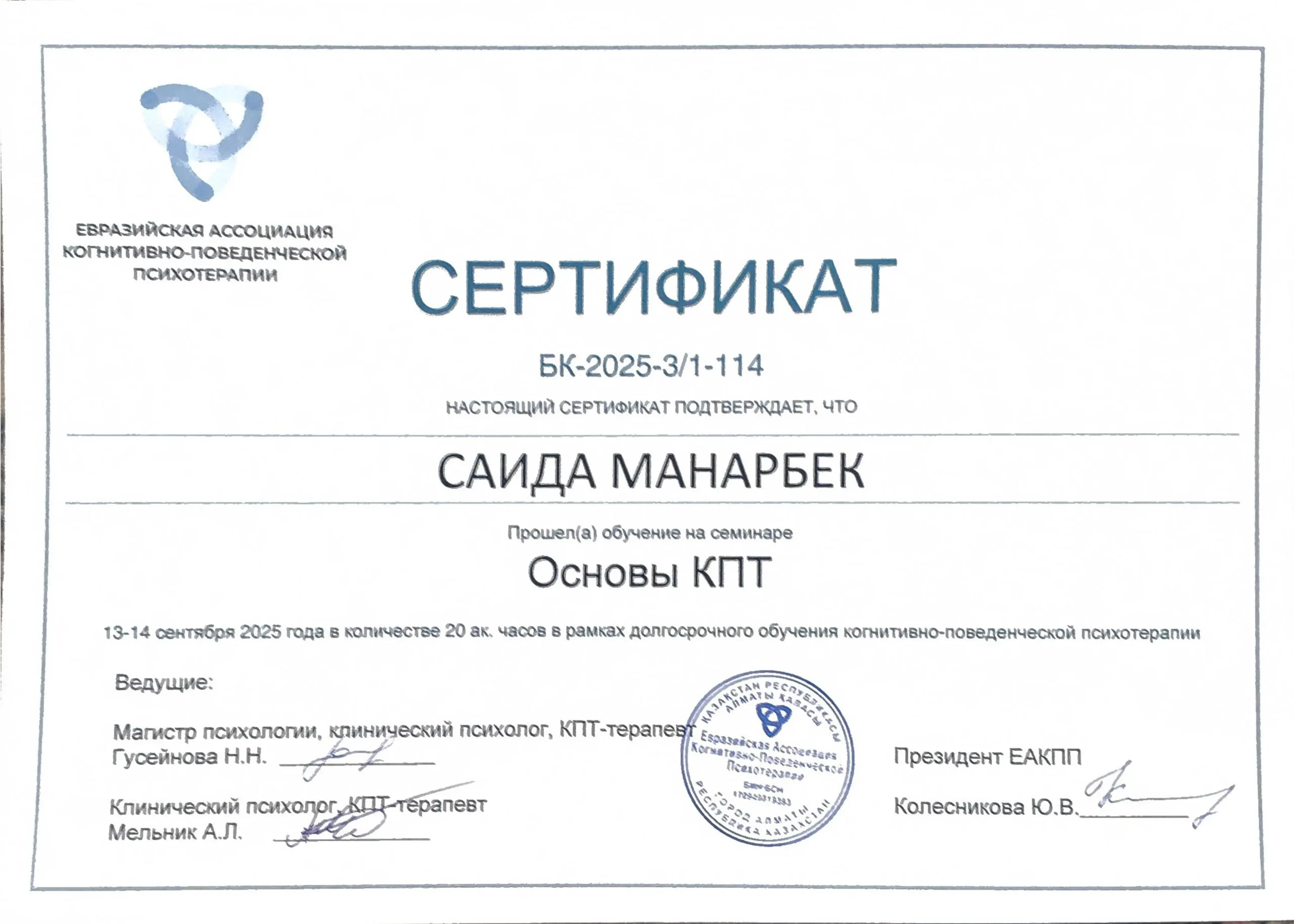 2025 жылғы 13–14 қыркүйек күндері Алматы қаласындағы «Туран» университетінде когнитивті-мінез-құлық терапиясының (КПТ) негіздеріне арналған екі күндік білім беру семинары өтті. Іс-шара қазіргі психотерапияның теориялық және практикалық аспектілерін тереңірек меңгеруге бағытталған.