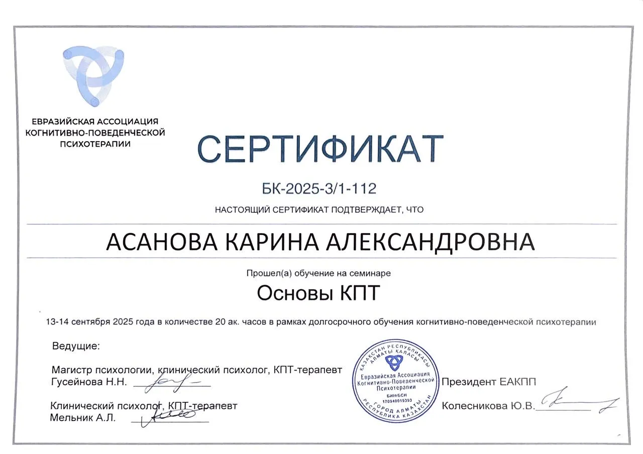 • Гусейнова Н.Н. — психология магистрі, клиникалық психолог, EMDR-Europe сертификатталған практигі, КПТ маман;