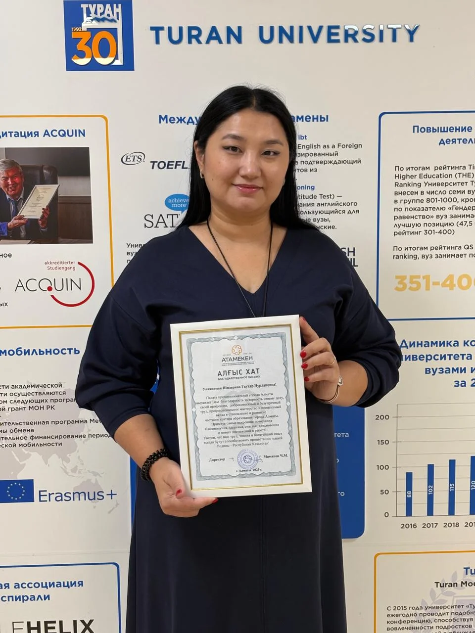 «Туран» университетінің ұжымы Гаухар Нұрланқызының жетістіктерімен шын жүректен мақтанады және осы жоғары марапатымен құттықтайды!