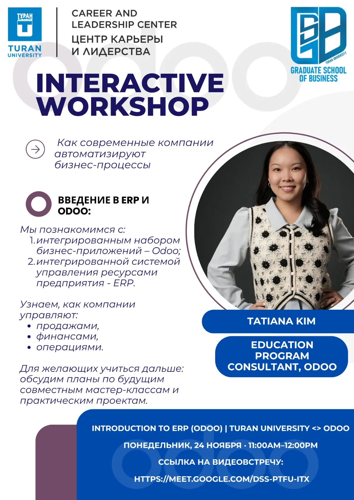 Іс-шара ұйымдастырушылары: Odoo, Туран университетінің Бизнес жоғары мектебі, Мансап және көшбасшылық орталығы