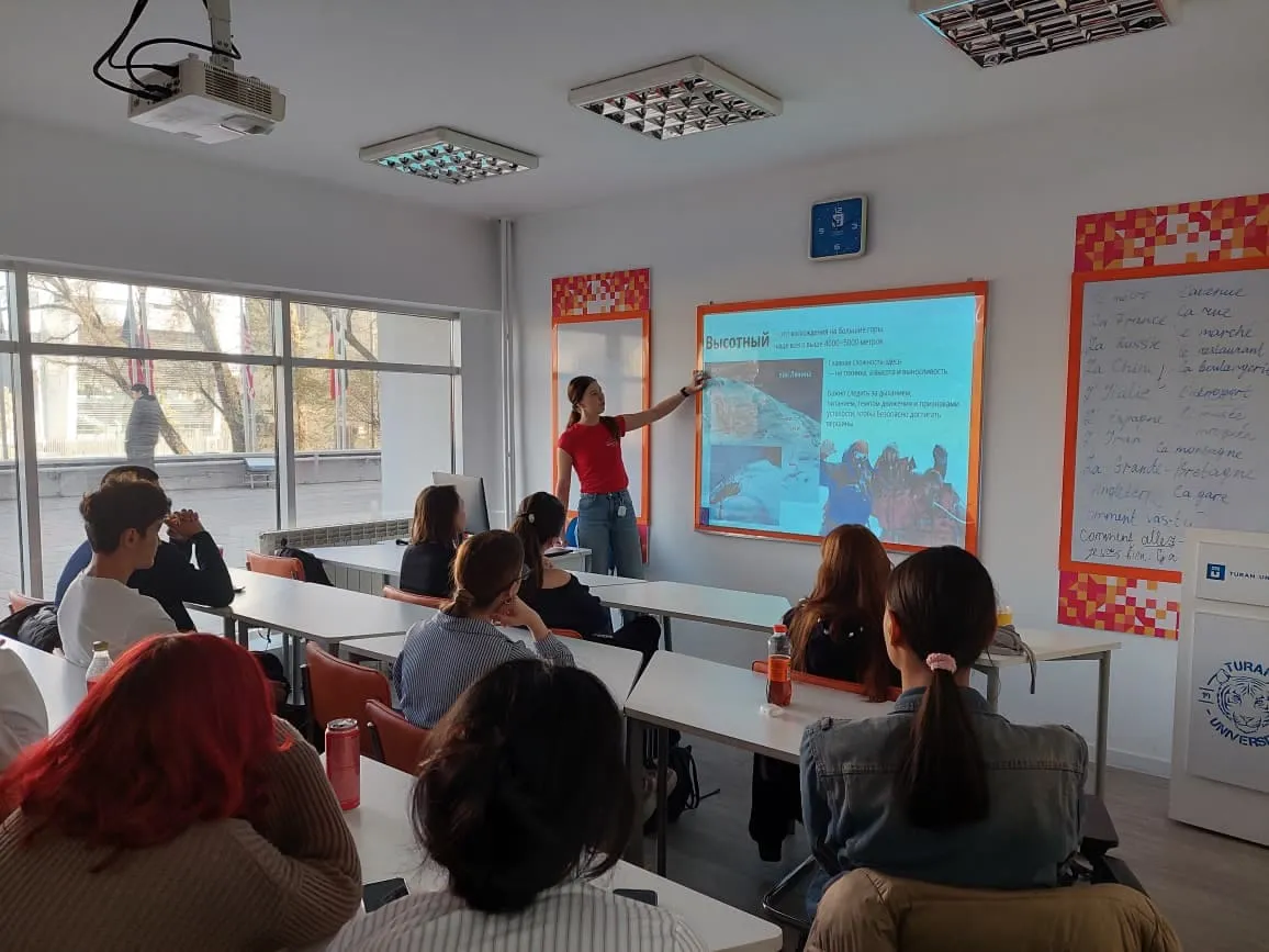 2025 жылғы 25 қарашада «Туризм» білім беру бағдарламасының 4-курс студенті Скопина Дарья бірінші курс студенттерімен мотивациялық кездесу өткізіп, Еуропаның ең биік нүктесі – Эльбрус тауына (5642 м) жасаған алғашқы биіктікке шығу тәжірибесімен бөлісті.