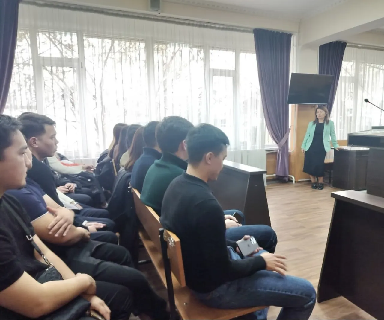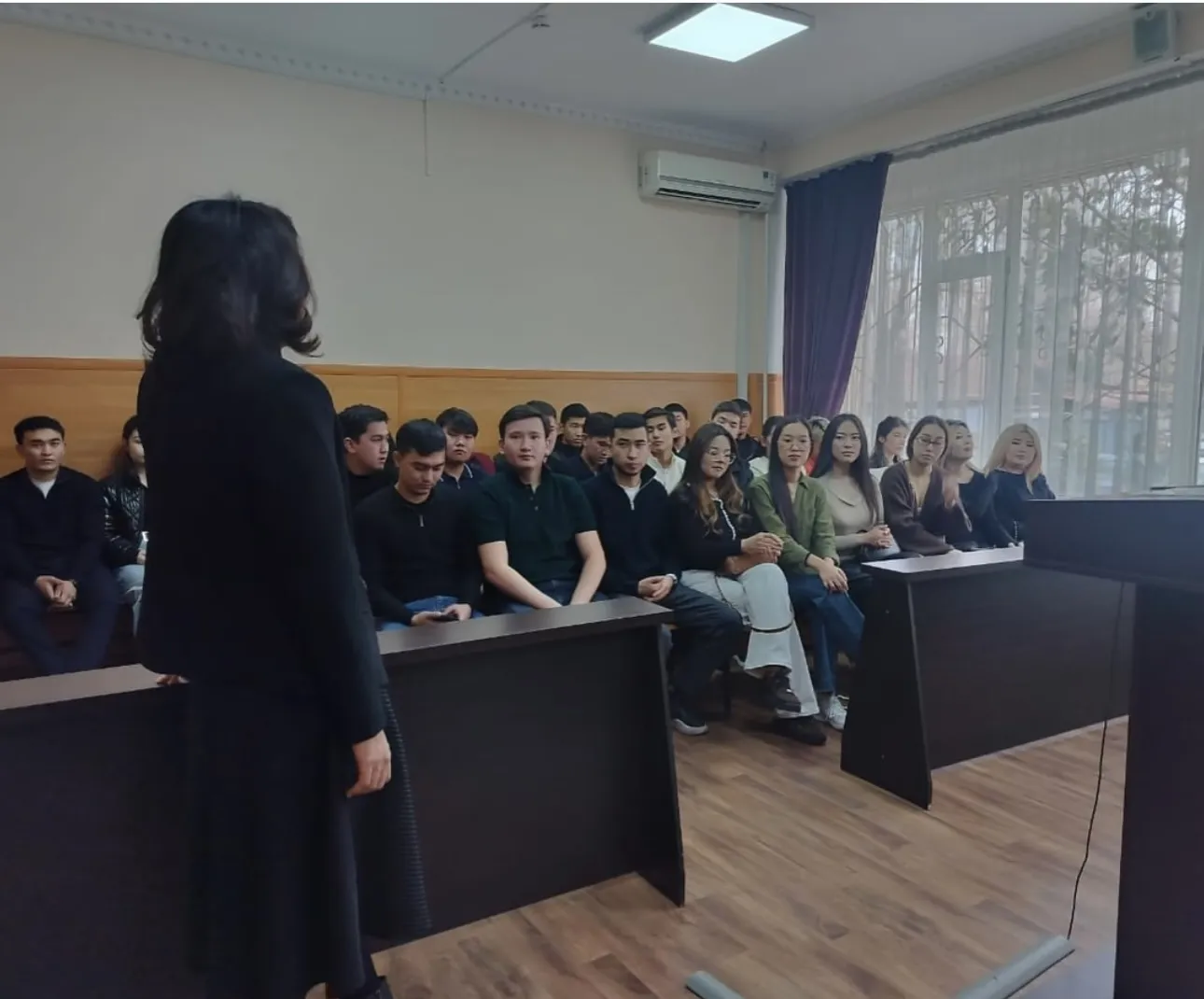 2025 жылғы 20 қарашада «Тұран» университетінің Құқық жоғары мектебінің қауымдастырылған профессоры Жугралина Б.М. жетекшілігімен «Құқықтану» білім беру бағдарламасының үшінші курс студенттері Алматы қаласының азаматтық істерді қарайтын Медеу аудандық сотына оқу экскурсиясын жасады. Іс-шара тәжірибеге бағытталған оқыту аясында ұйымдастырылып, студенттердің кәсіби білімін кеңейтуге және сот жүйесінің шынайы қызметімен таныстыруға бағытталды. Экскурсия барысында қатысушылар соттың жұмыс ұйымдастыруымен және азаматтық істерді қарау ерекшеліктерімен танысты. Судья Динара Бекенқызы Қуйқабаева мазмұнды кездесу өткізіп, сот жүйесінде жұмыс істегісі келетін кандидаттарға қойылатын талаптар, мүмкін карьерлік бағыттар және жұмысқа орналасу тәртібі туралы айтып берді. Сонымен қатар, сот қызметкері иеленуі тиіс кәсіби және жеке қасиеттерге – жауапкершілік, мұқияттылық, этикаға сай әрекет ету, құжаттармен жұмыс істей білу және іс жүргізу нормаларын сақтау – ерекше назар аударылды. Кездесу ашық диалог форматында өтті: студенттер өздерінің кәсіби қызығушылықтарымен бөлісіп, судья әр сұраққа жан-жақты жауап беріп, практикалық кеңестер берді. Экскурсия болашақ заңгерлердің кәсіби дайындығының маңызды бөлігі болып, студенттерге білімін кеңейтуге және университетті аяқтаған соң сот жүйесінде жұмысқа орналасу мүмкіндіктері туралы нақты түсінік алуға мүмкіндік берді.