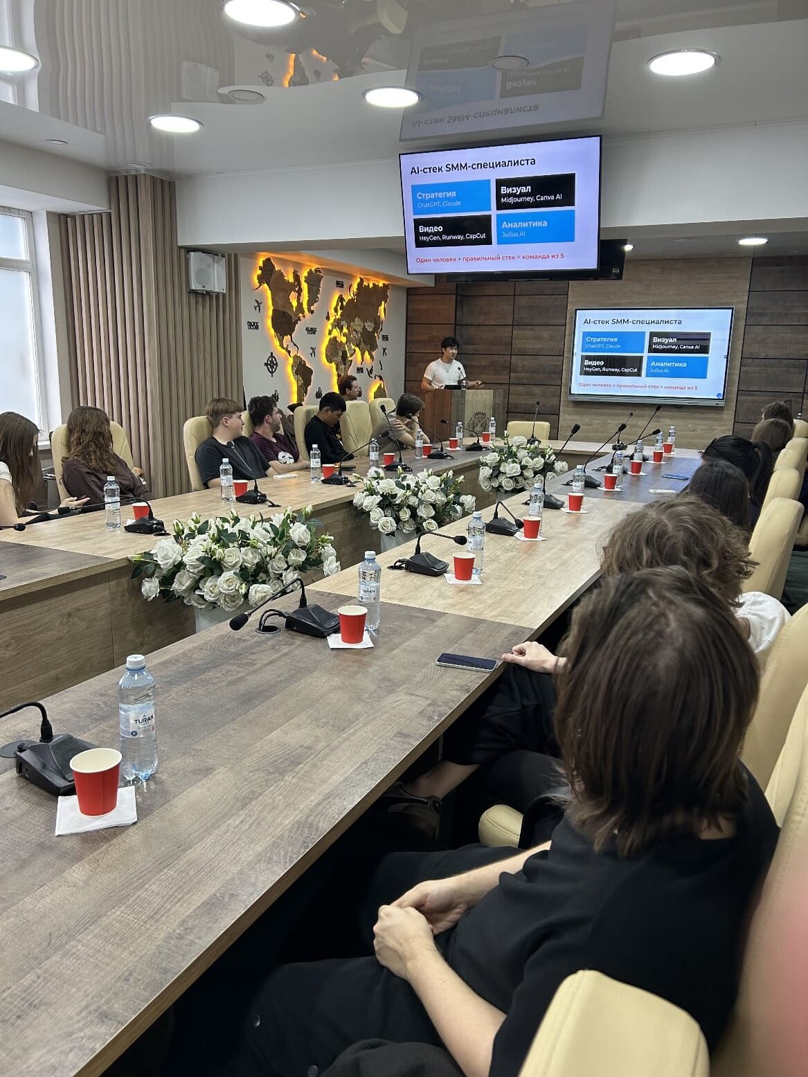 Спикерлер жасанды интеллект құралдары мен технологиялары, олардың бизнесте, маркетингте және жарнамада қолдану мүмкіндіктері, артықшылықтары, ерекшеліктері мен ережелері туралы әңгімеледі; олардың функционалдығына салыстырмалы талдау жүргізді; жұмыстың нақты мысалдарын келтірді және генеративті ЖИ қолданудың құнды практикалық тәжірибесімен бөлісті. Сонымен қатар, олар ЖИ, атап айтқанда ChatGPT қолданудың қателіктері мен кемшіліктері туралы ескертті.