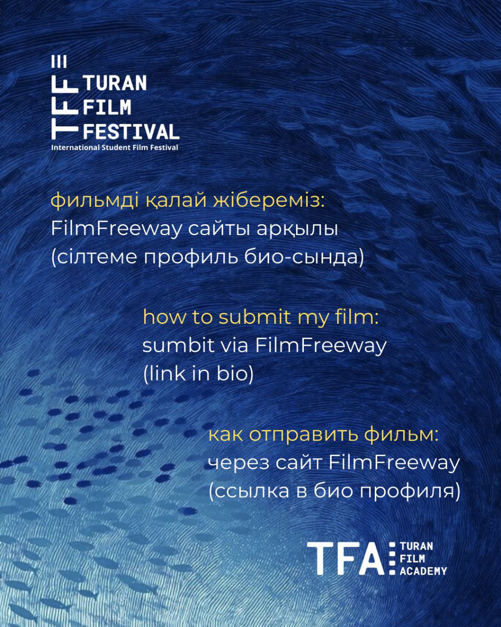 2026 жылғы 27 сәуір – 02 мамыр аралығында, Алматыда өтетін III Халықаралық Turan Film Festival фильмдерді қабылдауды бастайды!