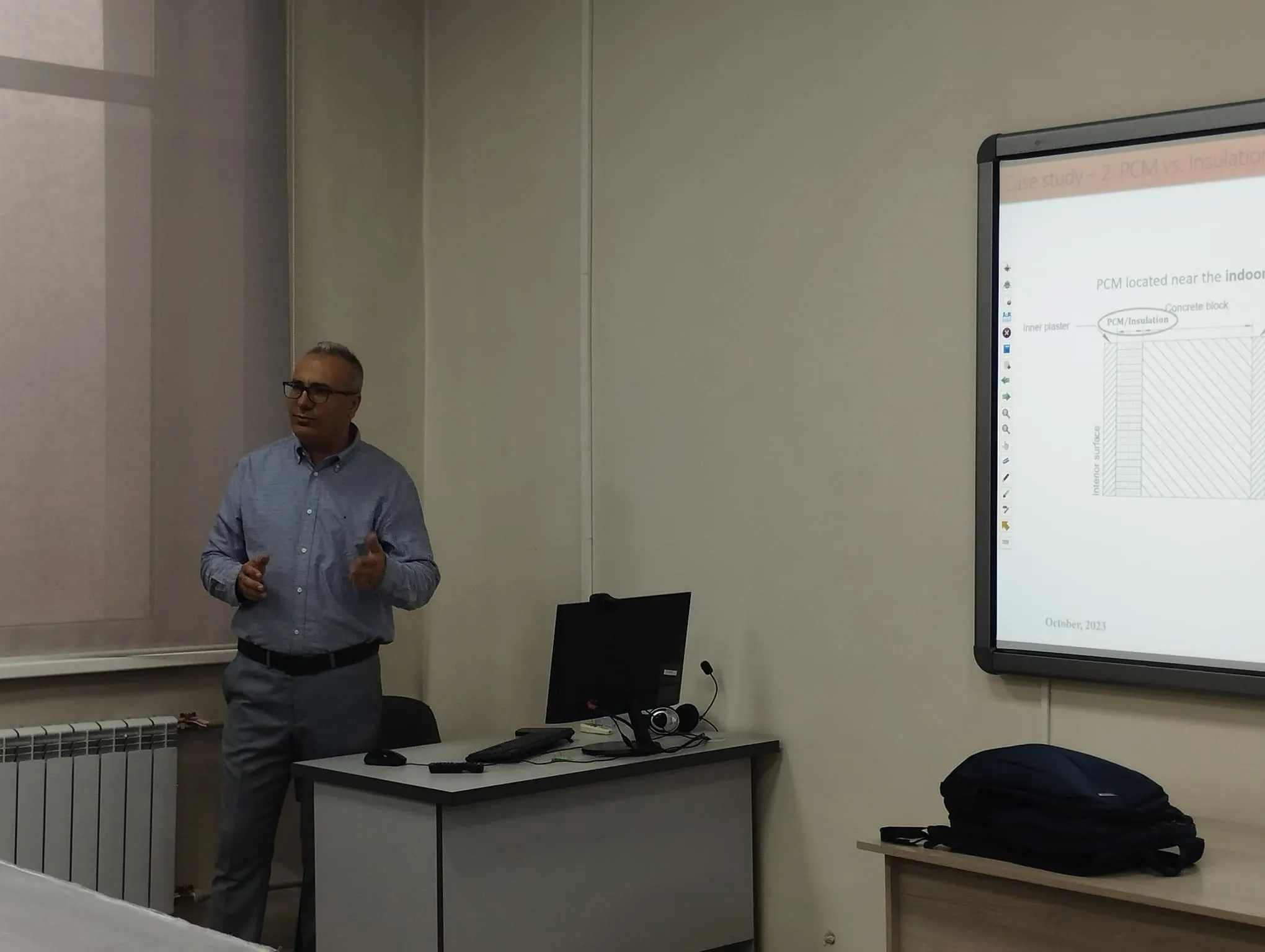 27 октября 2023 года Professor PhD, Kocaeli University, Izmit, Turkey, Muslum Arici прочитал гостевую лекцию на тему «Reduction of energy consumption in buildings by synergetic effect of conventional and innovative materials» студентам образовательных программ «Вычислительная техника и программное обеспечение», «Радиотехника, электроника и телекоммуникации», участвовали также магистранты образовательной программы «Вычислительная техника и программное обеспечение».