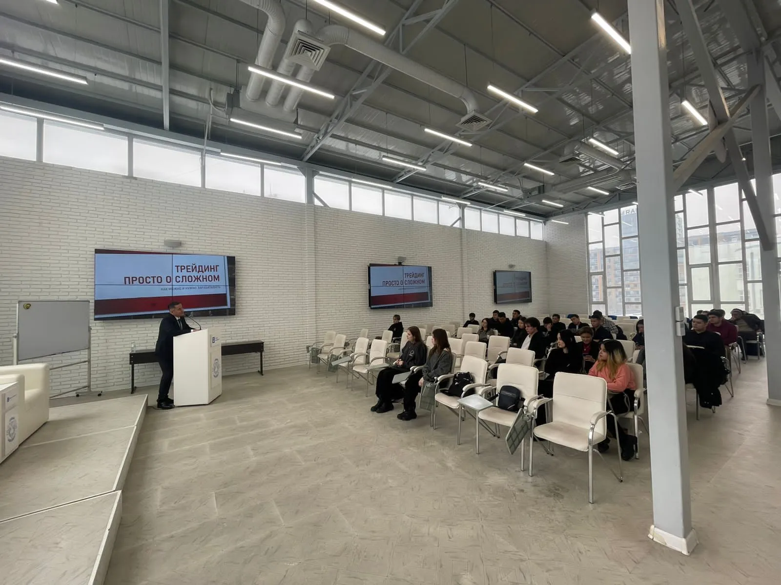 Лектор предложил слушателям пройти бесплатное обучение по трейдингу в его компании, чем вызвал большой интерес у студентов университета «Туран».