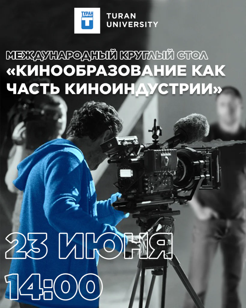 Университет «Туран» приглашает на Международный круглый стол «Кинообразование как часть киноиндустрии», который пройдет 23 июня 2021 года в 14:00 в офлайн и онлайн формате.