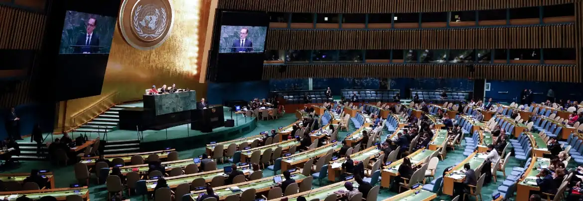 Генеральная Ассамблея (ГАООН), учрежденная в 1945 году согласно Уставу Организации Объединенных Наций, занимает в ООН центральное место, являясь ее главным совещательным, директивным и представительным органом. Состоящая из всех 193 членов Организации Объединенных Наций, она представляет собой уникальный форум для многостороннего обсуждения всего спектра международных вопросов, затронутых в Уставе.